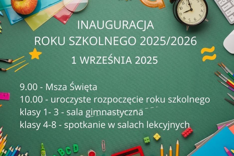 INAUGURACJA ROKU SZKOLNEGO 2025/26 Już w poniedziałek, 1 września, rozpoczniemy kolejny rok szkolnych. Mamy nadzieję, że spotkamy się wszyscy…